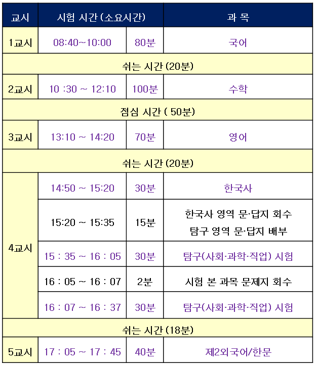 2022 수능 시간표 | 2022 수능 계획 발표 수능 시간표 출제영역 배점 등 학원멘토 대입정보 게시판
