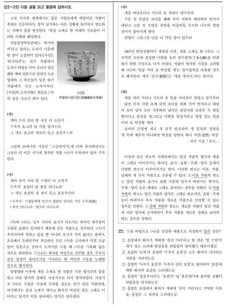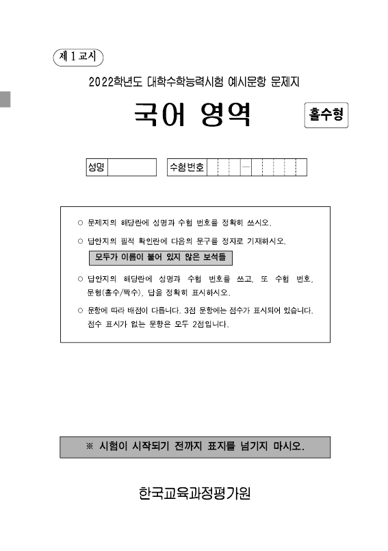 2022 수능시험 국어 예시 문항 문제지 네이버 블로그